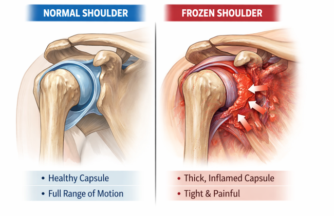 1️⃣ Why frozen shoulder happens — in simple language you can explain to your family