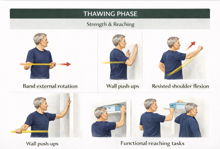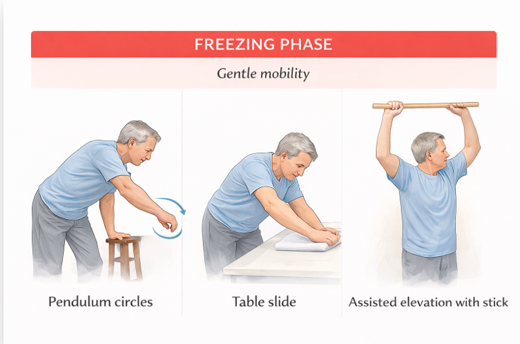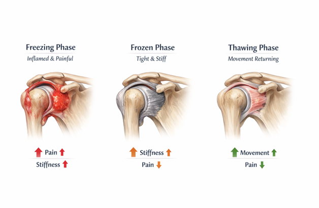 Frozen shoulder moves through three phases, and each phase needs a different approach.