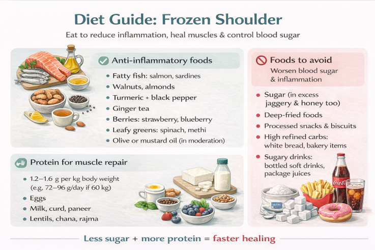 Frozen shoulder is not only a joint problem — it’s also influenced by inflammation, healing capacity, blood sugar balance, and daily habits.